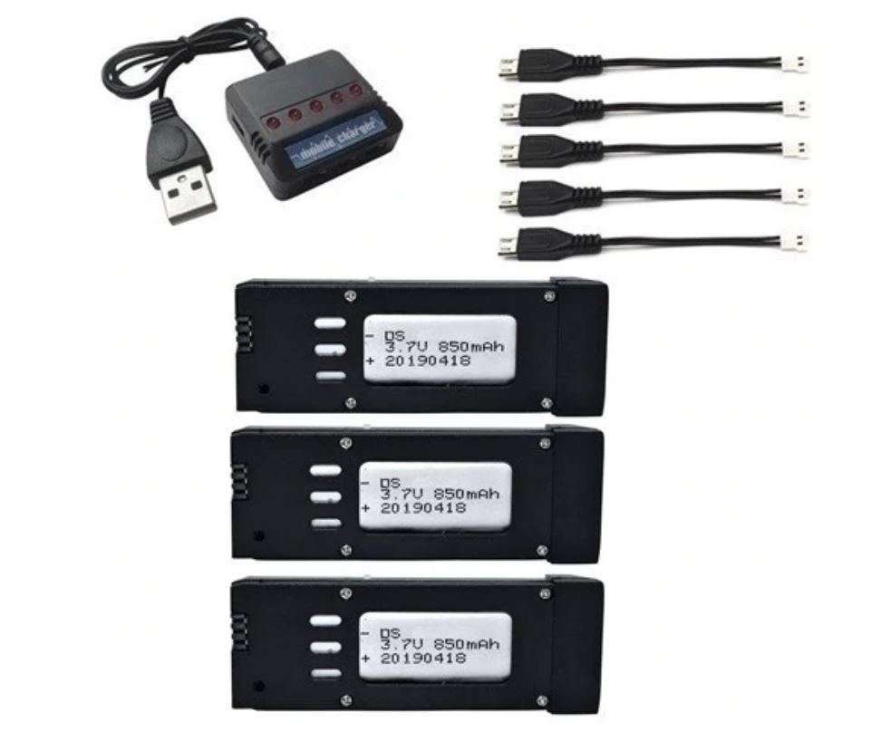 3 Batteries 3.7V 850mAh avec Chargeur 5 en 1 pour Eachine E58 JY019 S168