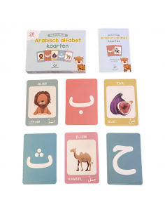 Met mijn eerste arabisch alfabet kaarten leren kindjes spelenderwijs de letters van het arabisch alfabet en arabische woordjes. De 28 kaarten zijn extre groot en hebben mooie zachte kleuren. Gebruik de kaarten op verschillende manieren en stimuleer de letterherkenning en woordenschat.