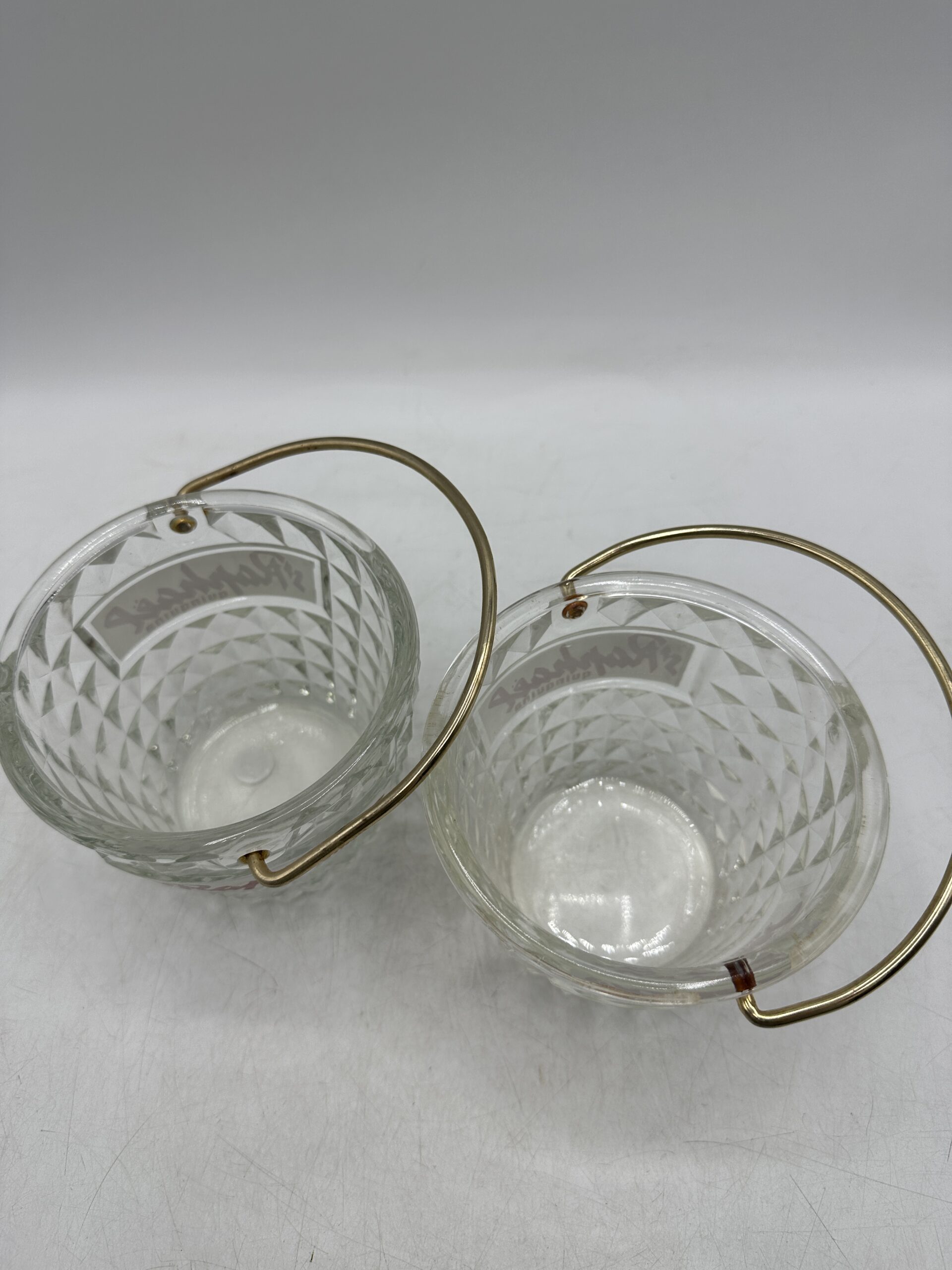 Ce lot de deux petits seaux à glaçons en verre sera du plus bel effet sur vos table lors des apéritifs. Ils ont un diamètre de 11,5 cm pour une hauteur de 11 cm.