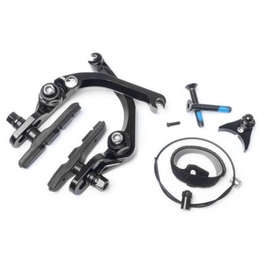 - Livré avec triangle SHADOW CNC (Câble Hanger), câble pontet et patins tendres, velcro d’attache cadre.