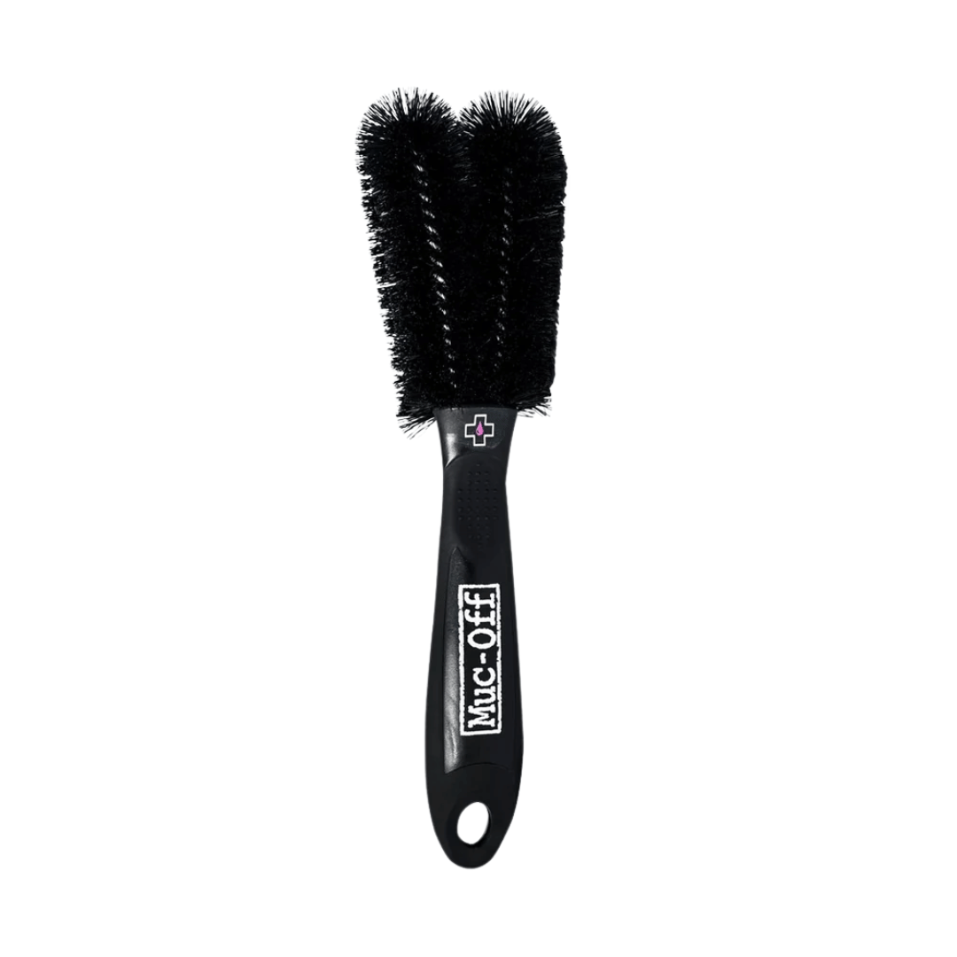 - Brosse à deux pointes est idéal pour atteindre les saletés difficiles à enlever sur les rayons, les disques, les amortisseurs, les manivelles, les tringleries et les pédales. Sa conception comprend une poignée robuste et résistante aux chocs qui ne glisse pas dans des conditions extrêmes et des poils en nylon durables. Les deux têtes de brosse peuvent être modifiées et repositionnées pour atteindre les zones les plus étroites.