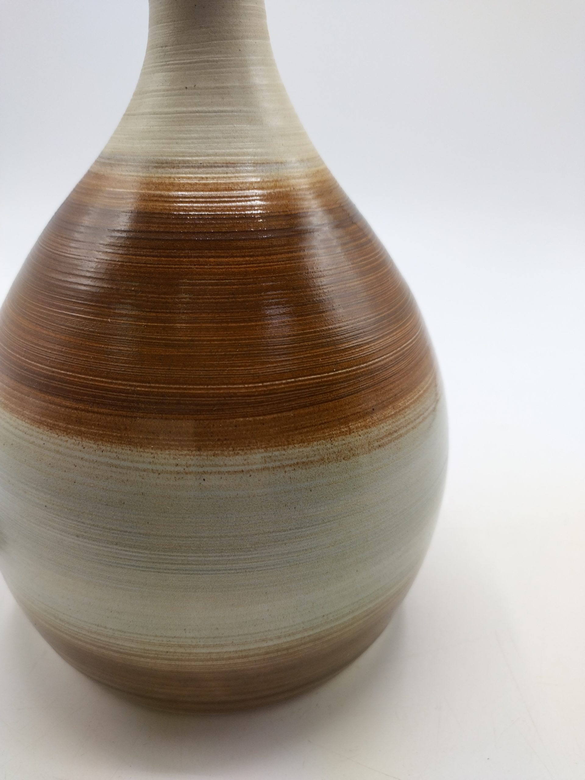 On adore cette magnifique lampe de chevet ou de bureau à poser. En terre cuite vernissée et en forme de boule, la lampe a une belle couleur beige avec des effets de vernis de couleur brune. Électrique, la lampe a été testée et elle fonctionne parfaitement bien. De création artisanale, elle a été signée de la main du potier et porte la signature Le May et il s’agit donc d’un objet unique ! Avec son look minéral ultra tendance, elle sera parfaite pour une déco au style minéral, minimaliste ou bohème !
