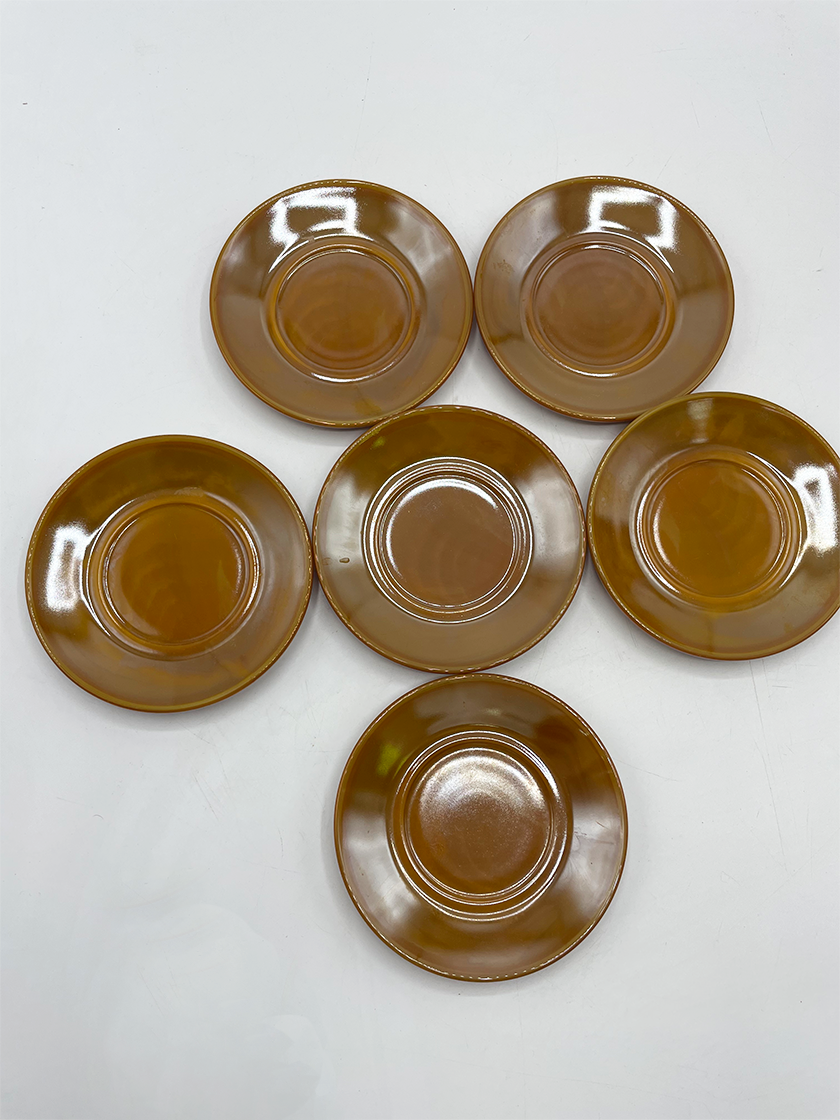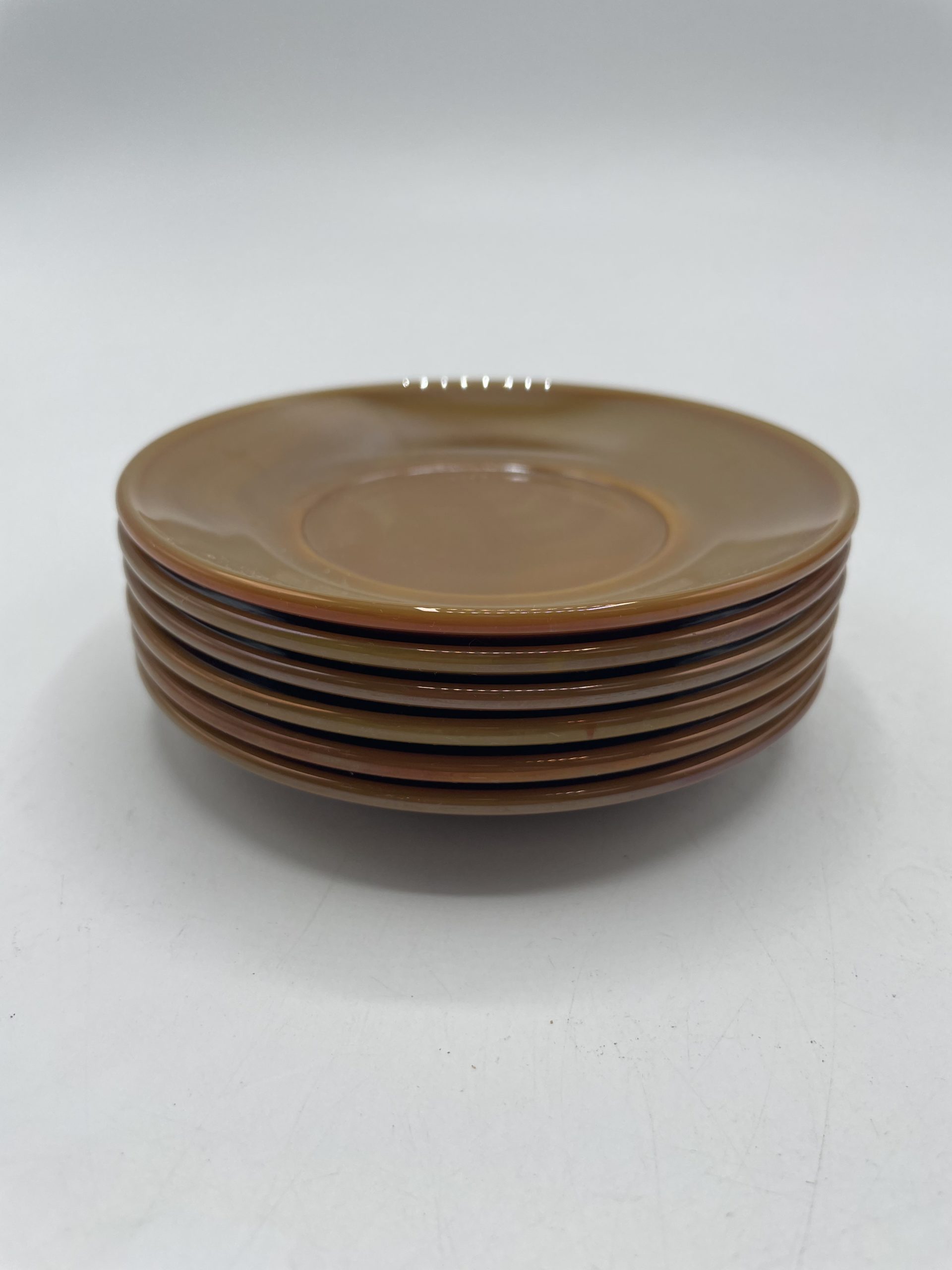 Lot 6 tasses à café et soucoupes vintage Arcopal pour La Maison du Bon CaféOn craque d’amour pour ce joli service qui se compose de 6 tasses à café et de leurs soucoupes assorties. En opaline de couleur café, les tasses et les soucoupes sont des objets publicitaires et produits dérivés pour la marque La Maison du Bon Café. Les soucoupes et les tasses sont marquées Arcopal et peuvent s’empiler les unes sur les autres pour faciliter le rangement. Vintage, de légères traces d’usure sont à prévoir (cf photos) jolies marques du temps passé. A la fois sobres et élégantes, ces jolies tasses à café sont intemporelles !